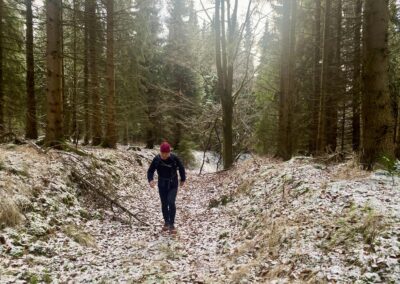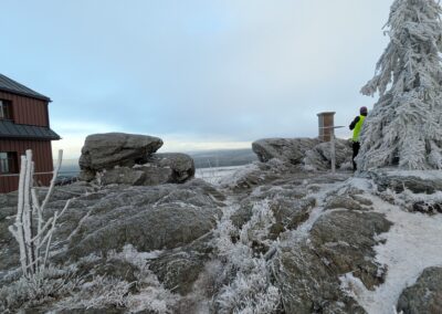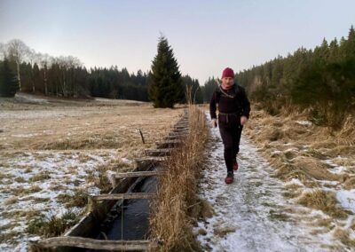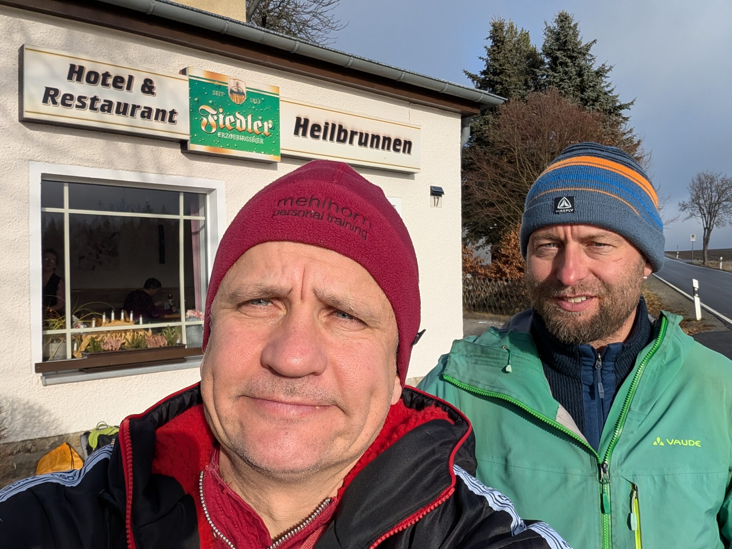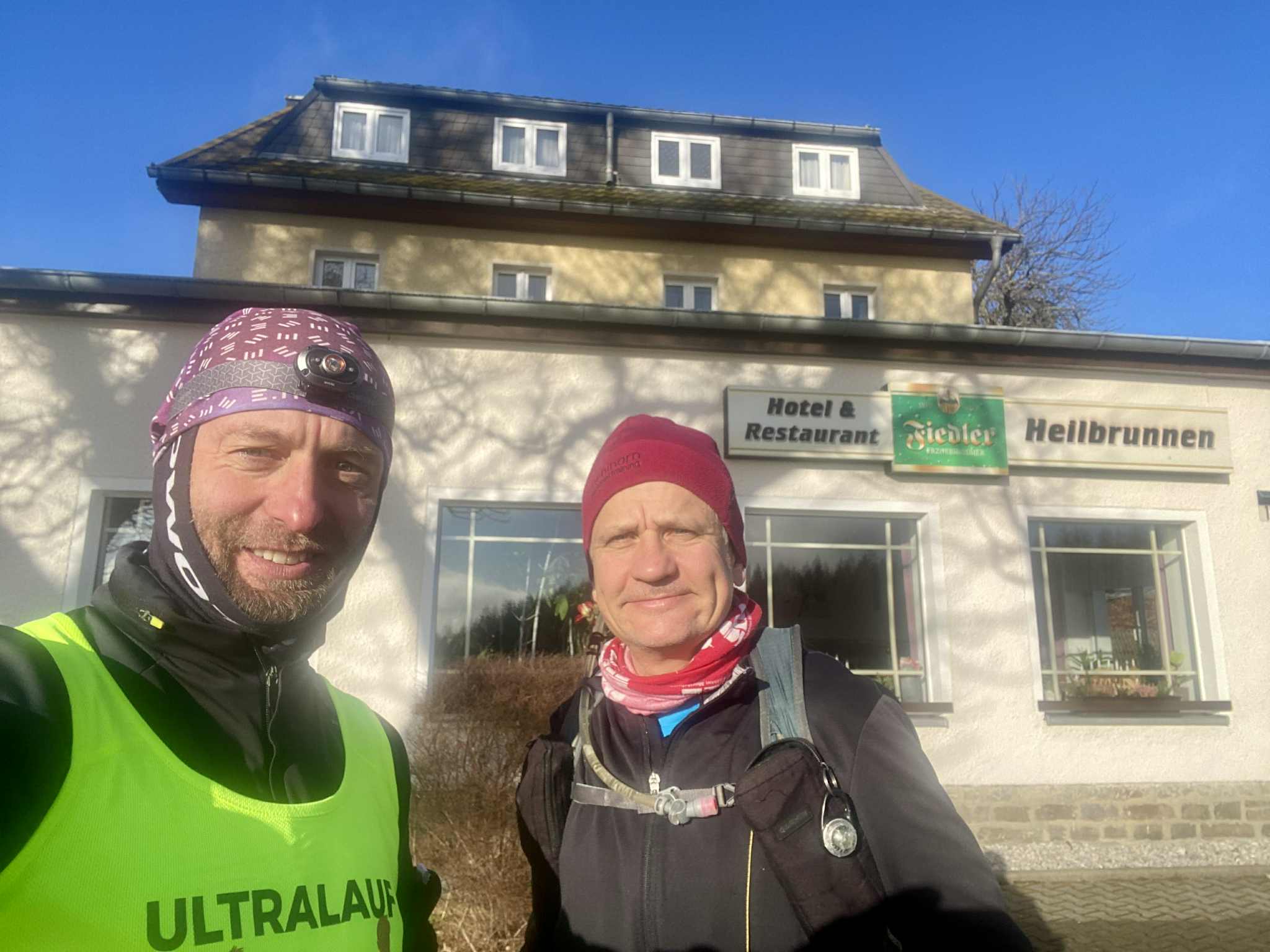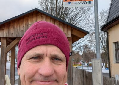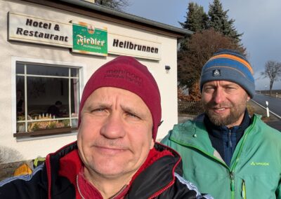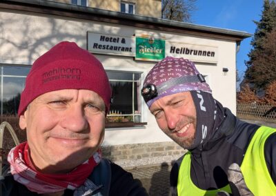 Mit Marcus war und bin ich öfters unterwegs. So auch am 28.12.25. Das Ablaufen der 1. Hälfte der zweiten Etappe des Ultralaufs 13 war unser Plan. Jens, der ursprünglich geplante Streckenguide, kann leider im März nicht dabei sein. So machten wir uns zunächst mit zwei Autos auf die Anreise. Das Auto von Marcus haben wir in Kühnhaide stehen gelassen. Während der Anreise wäre ich fast mit meinem Citroën an einem Berg in den Graben gerutscht, weil ein Teilstück nicht gestreut war. Das war ein komisches Gefühl, als er trotz angezogener Handbremse einfach weiterfuhr. Ich spürte schon den Atem von Mausi im Nacken. Dann hatte der Gott der Straße ein Einsehen und der Citröen fuhr zurück auf einen gesicherten Straßenabschnitt. Nach diesem Schreck konnten wir den Etappenstart am Hotel Heilbrunnen erreichen. Zügig zogen wir die Laufsachen an und los ging es. Das vorab geplante Eisschwimmen musste leider ausfallen. Entweder waren unsere Seen zugefroren oder es war eine Trinkwassertalsprerre. Da wir zwei das erste Mal auf diesem Abschnitt waren, kamen wir nur sehr langsam voran. Einfach nur so laufen, war nicht unser Anspruch. Wir achteten auf die Tauglichkeit der Wege für die Laufgruppe zum Event. So kamen wir Meter um Meter voran. Unsere geplante Ankunftszeit verzögerte sich weiter und weiter. Zudem hatte ich meine Stirnlampe nicht mitgenommen. Marcus war da umsichtiger und rettete uns so ins Etappenziel. Mit seinem PKW holten wir dann meinen Citroën am Hotel Heilbrunnen ab und jeder konnte dann nach Hause fahren. Marcus kam mit „leichter“ Verspätung an. Ich danke ihm für die Begleitung und dass er die Strapazen auf sich genommen hat.
