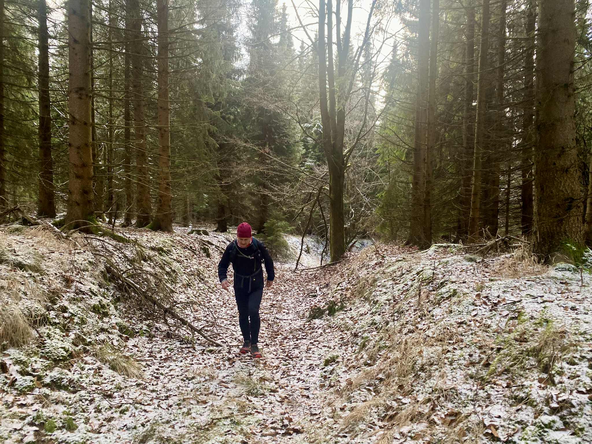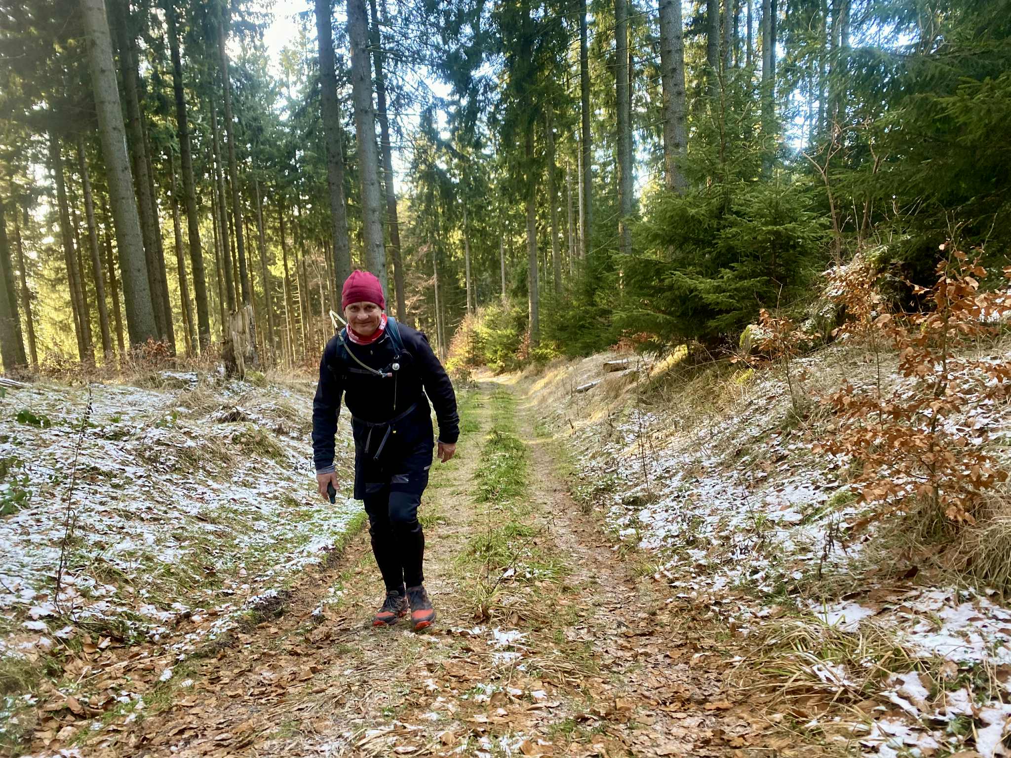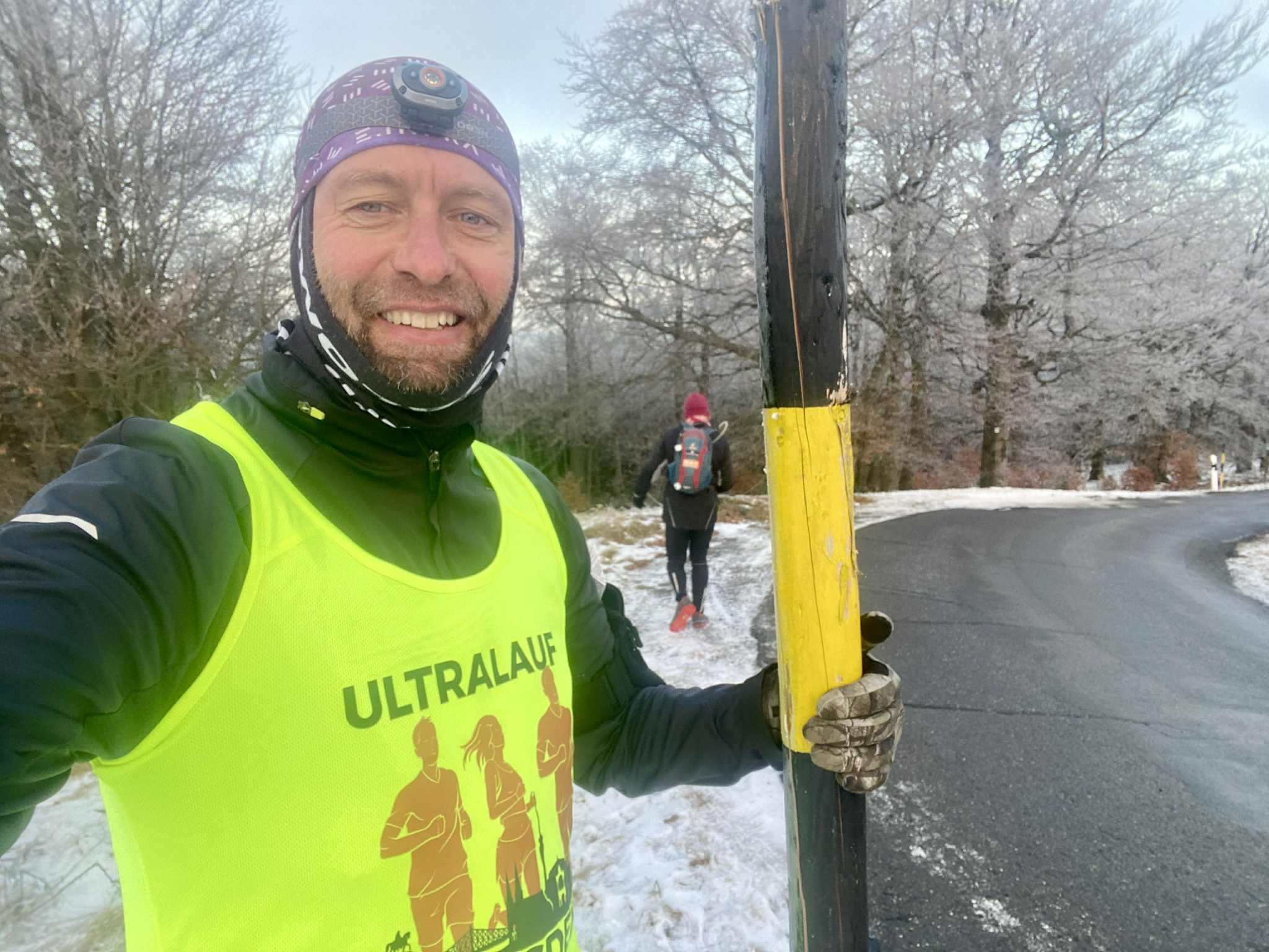 Mit Marcus war und bin ich öfters unterwegs. So auch am 28.12.25. Das Ablaufen der 1. Hälfte der zweiten Etappe des Ultralaufs 13 war unser Plan. Jens, der ursprünglich geplante Streckenguide, kann leider im März nicht dabei sein. So machten wir uns zunächst mit zwei Autos auf die Anreise. Das Auto von Marcus haben wir in Kühnhaide stehen gelassen. Während der Anreise wäre ich fast mit meinem Citroën an einem Berg in den Graben gerutscht, weil ein Teilstück nicht gestreut war. Das war ein komisches Gefühl, als er trotz angezogener Handbremse einfach weiterfuhr. Ich spürte schon den Atem von Mausi im Nacken. Dann hatte der Gott der Straße ein Einsehen und der Citröen fuhr zurück auf einen gesicherten Straßenabschnitt. Nach diesem Schreck konnten wir den Etappenstart am Hotel Heilbrunnen erreichen. Zügig zogen wir die Laufsachen an und los ging es. Das vorab geplante Eisschwimmen musste leider ausfallen. Entweder waren unsere Seen zugefroren oder es war eine Trinkwassertalsprerre. Da wir zwei das erste Mal auf diesem Abschnitt waren, kamen wir nur sehr langsam voran. Einfach nur so laufen, war nicht unser Anspruch. Wir achteten auf die Tauglichkeit der Wege für die Laufgruppe zum Event. So kamen wir Meter um Meter voran. Unsere geplante Ankunftszeit verzögerte sich weiter und weiter. Zudem hatte ich meine Stirnlampe nicht mitgenommen. Marcus war da umsichtiger und rettete uns so ins Etappenziel. Mit seinem PKW holten wir dann meinen Citroën am Hotel Heilbrunnen ab und jeder konnte dann nach Hause fahren. Marcus kam mit „leichter“ Verspätung an. Ich danke ihm für die Begleitung und dass er die Strapazen auf sich genommen hat.