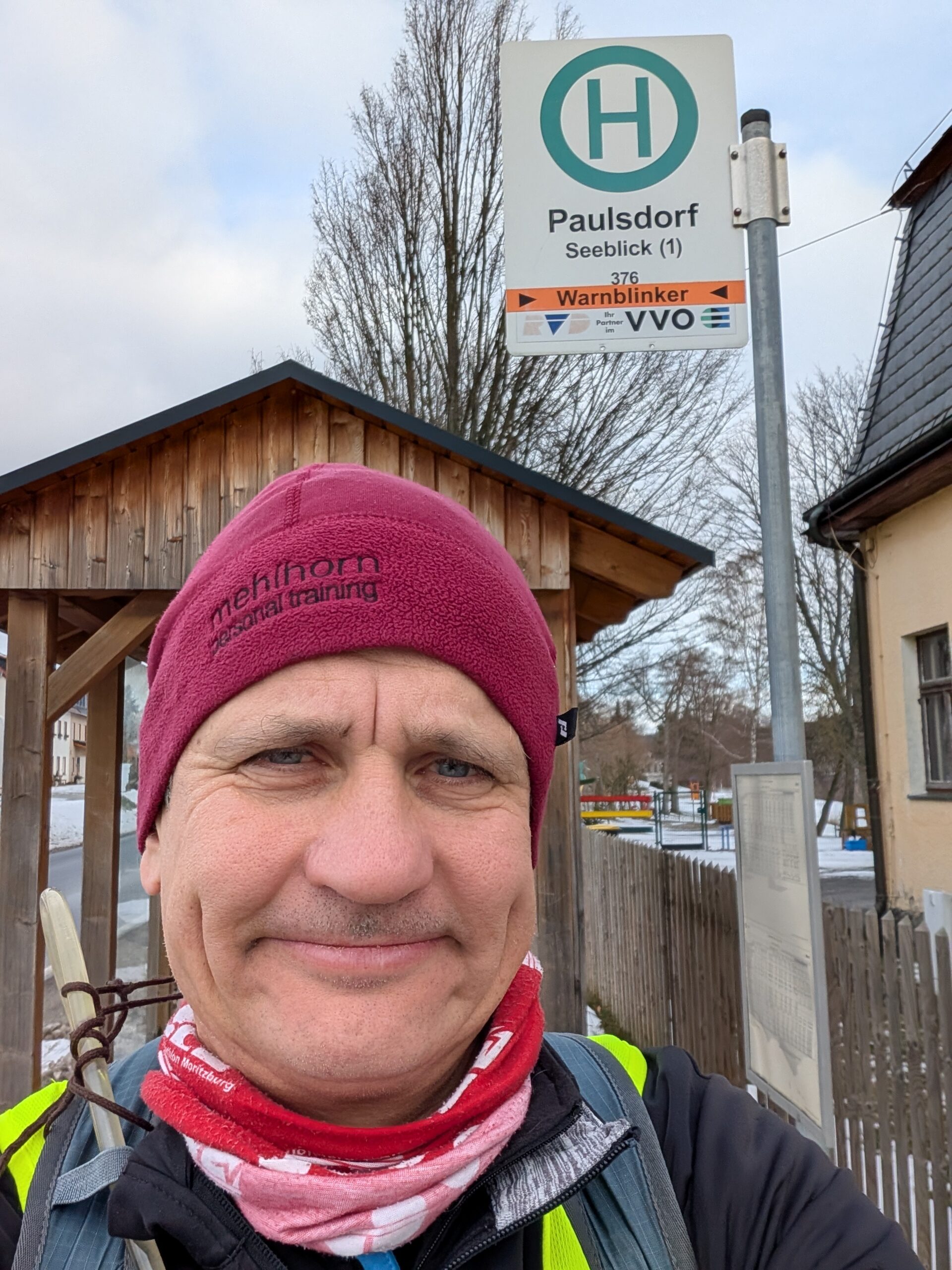 Probestreckenlauf auf der 3. Etappe am 03.01.26: Hier auf der zweiten Hälfte. Da musste ich allein ran. Mein Auto parkte ich beim Edeka Foodservice auf der Tauberthstraße. Zum geplanten Laufstart an der Talsperre Malter bin ich dann mit Bus und Bahn gefahren, 90 Minuten. Dem Busfahrer möchte ich meinen Respekt aussprechen für die Fahrleistung im Gebirge. 12:00 Uhr bin ich am Seeblick Paulsdorf losgelaufen. Der Winter war hier abschnittsweise gut vertreten. Geplant hatte ich ca. 3 Stunden. Die vielen Anstiege ließen mich immer aus dem Laufmodus kommen. Manchmal lag Schnee, dann wieder nur Waldboden. Dann wurde es rutschig. Spikes und meine Gamaschen leisteten gute Dienste auf einigen Abschnitten. Handschuhe trug ich gelegentlich, als es frostig kalt wurde. Für mich genial die letzten Kilometer, als ich entlang der Autobahnbrücke vor der Abfahrt Dresden Neustadt über die Elbe gelaufen bin. Danach war ich auch fast im Ziel. Die Laufzeit hatte ich entspannt überzogen. Für die 30 km habe ich 5 Stunden benötigt. Liebe Läufer trainiert Berge! Es wird „wellig“ 😉